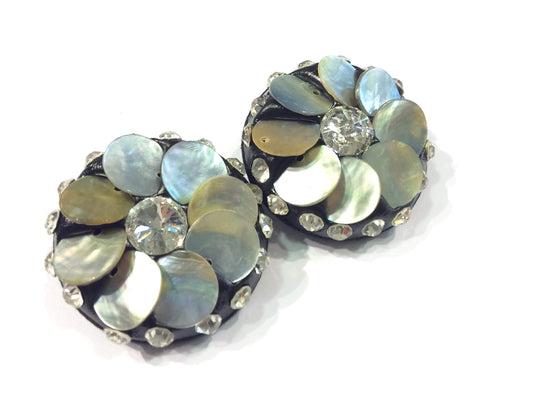 BOTTONE ALTA MODA NERO MADREPERLA E CRYSTAL CM 3