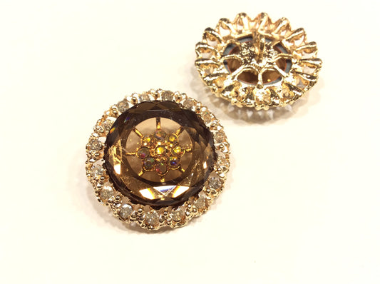bottone gioiello alta moda base oro pietra ambra centrale e strass