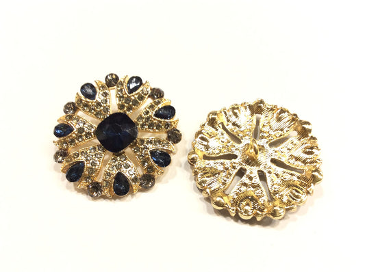 bottone gioiello alta moda base oro pietre blu cm 3,5