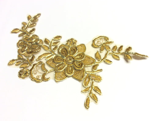 applicazione ricamo oro tralcio floreale cm 20 x 15