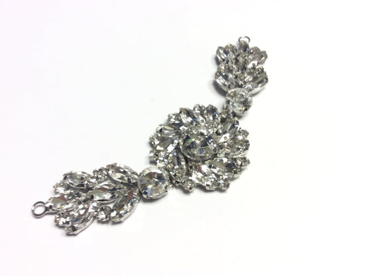 applicazione cm 15 passamaneria gioiello da cucito base argento pietre e strass