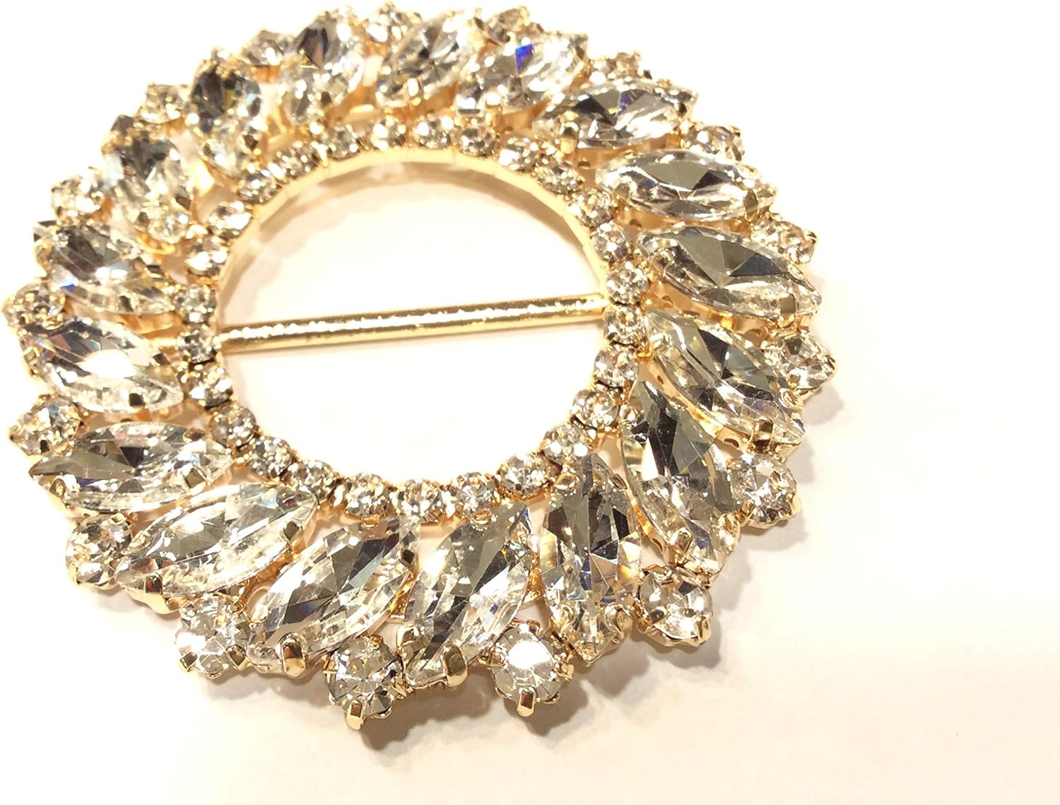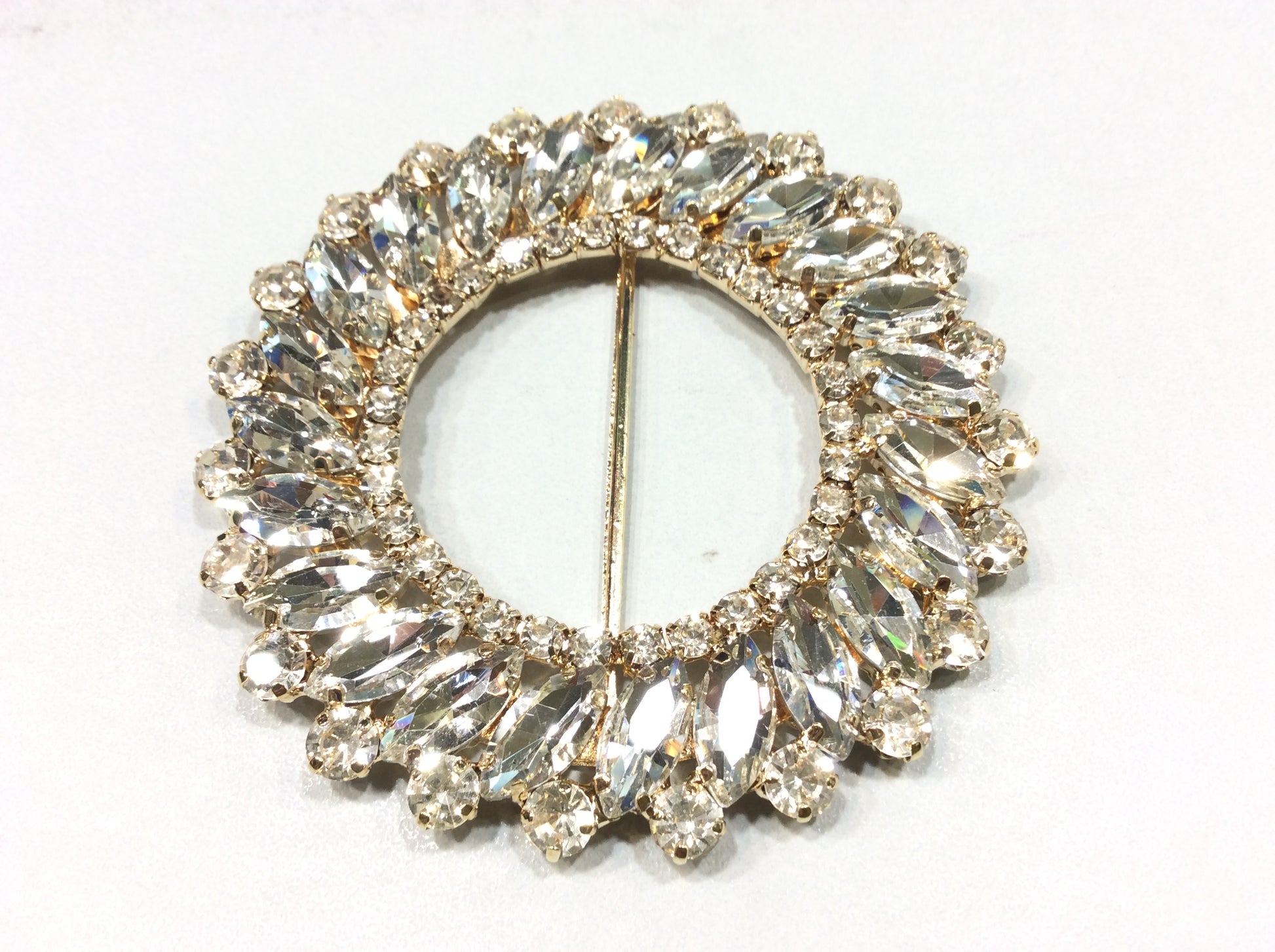 fibbia ferma foulard gioiello oro e argento navette crystal cm 7 passante