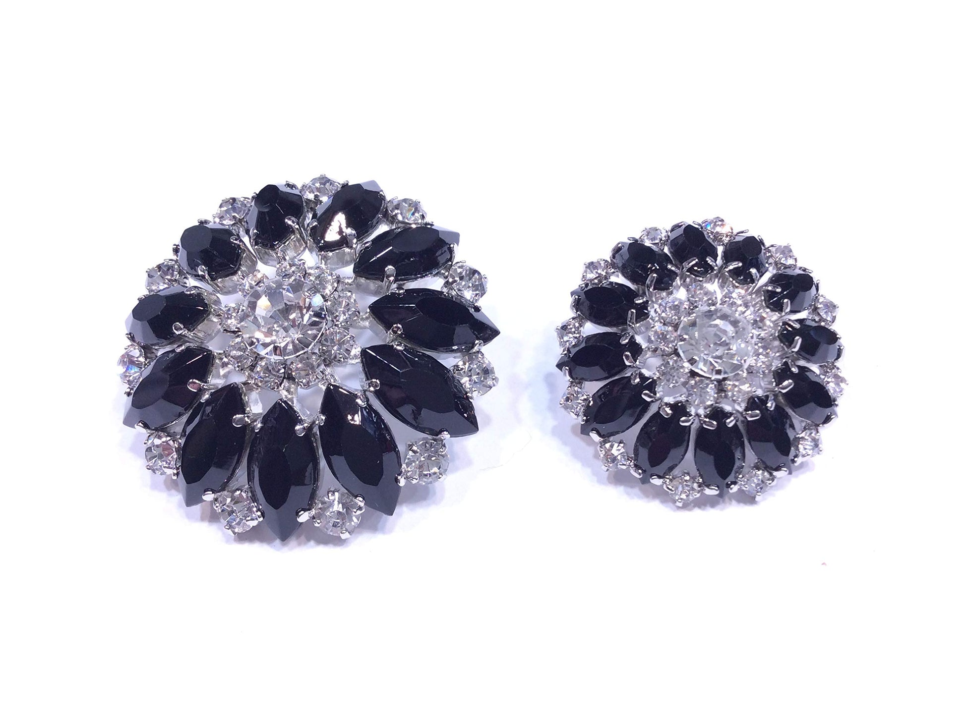BOTTONI GIOIELLO ALTA MODA BASE ARGENTO NAVETTE NERE CM 3